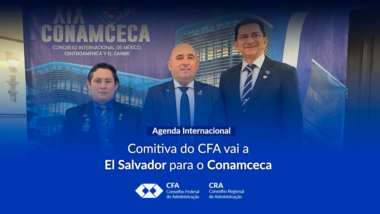 5 janeiro, 2026 18 dezembro, 2025 18 dezembro, 2025 5 janeiro, 2026 18 dezembro, 2025 18 dezembro, 2025 ADM+ portal de benefícios ADM Talentos & empregos Revista RBA IGM - CFA CFAPlay Publicações e Cartilhas ACAdm - Academia Corporativa Transparência CFA Faça seu Registro ADM Agência de Notícias Comitiva do CFA vai a El Salvador para o ConamcecaSeminário debaterá futuro das matrizes curriculares dos cursos de ADM no BrasilJustiça Federal reafirma a obrigatoriedade de registro para gerentes de relacionamento de instituições financeirasAdministração de Condomínios: fiscalização e profissionais registrados garantem maior segurança à sociedadeConandino acontece na Bolívia, com participação de comitiva do CFASemana Temática do Mês da Mulher traz informação e reflexão sobre temas de interesse ao público femininoEnbra 2026 – Mais um evento do Sistema CFA/CRAs vem aíPL 5.874/2025 reestrutura cargos e carreiras e deve beneficiar mais de 200 mil pessoasCFA é representado em evento de enfrentamento à violência contra mulher Carregar mais notícias Notícias CFA/CRAs CRA-RR realiza “Encontro Mulheres que Inspiram” e traz Gilda Nunes como inspiração da primeira ediçãoCRA-PB reinaugura sede e celebra Jubileu de Diamante da Administração com solenidade Diagnóstico Brasil IGM-CFA revela disparidades regionais e reforça papel da Administração na gestão pública30ª Edição do Congresso Nacional de Administração é sucesso de público e marca os 60 anos da profissãoPresidente do CFA participa de evento em homenagem à prefeita Gislaine Landim por gestão eficienteEBA 2025: Maceió é palco nacional da Administração, Inovação e LiderançaPresidente da ANPAD fala sobre sustentabilidade em gestão no EnANPAD 2025Nota de pesar – Sr. Manoel Leônidas Carregar mais notícias CFA/CRAs Eventos CFA/CRAs There are no upcoming events at this time Últimas Publicações Confira outras publicações