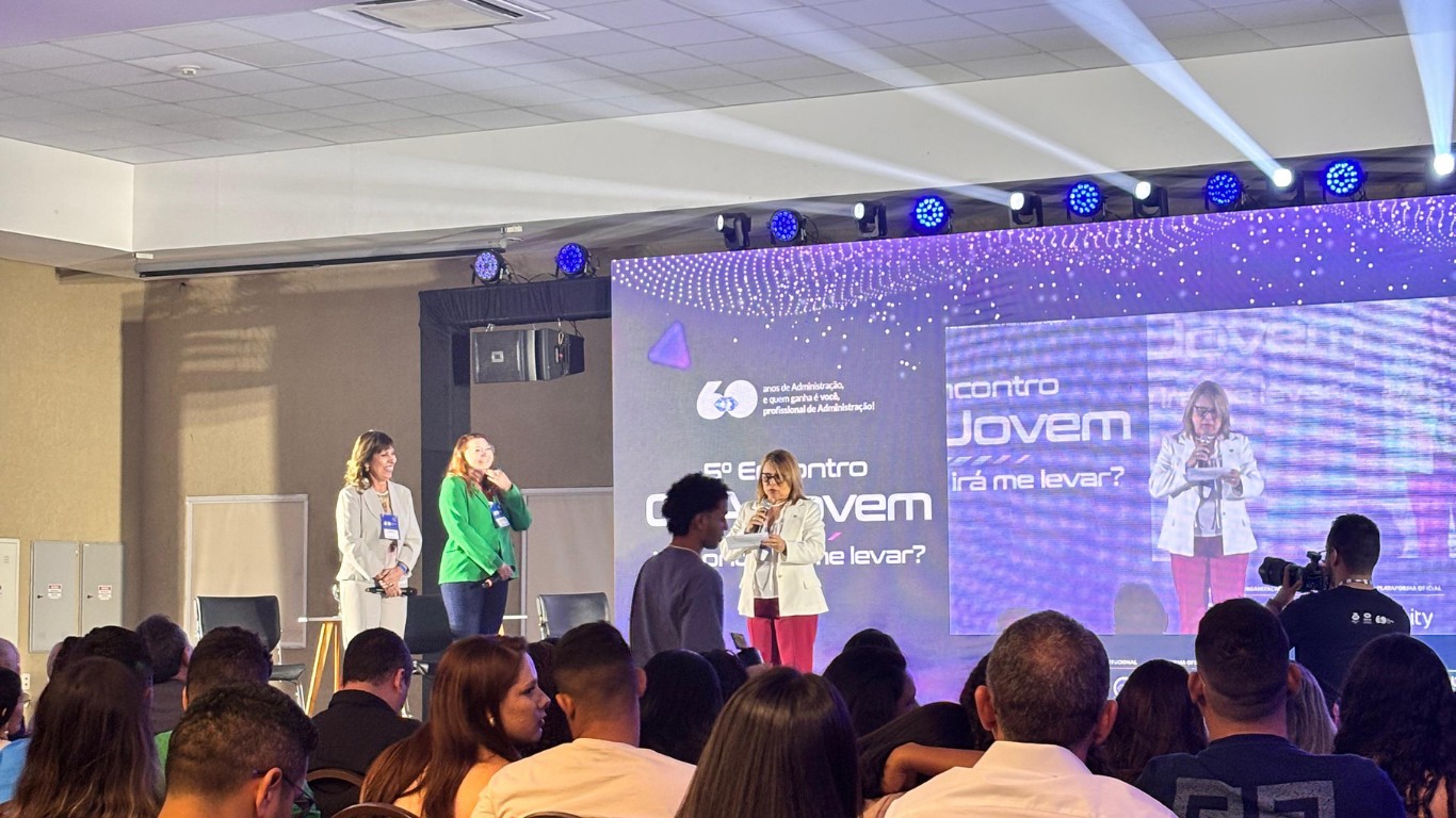 O segundo painel do CRA Jovem abordou o protagonismo e as perspectivas femininas no mercado de trabalho na era da Inteligência Artificial. Mediado pela Professora e mestre em administração, Rita Ma. Silveira, a mesa contou com a presença da Conselheira suplente do CRA-CE, Coordenadora e professora do curso técnico em Administração, Adryana Araujo, e da Diretora Executiva e Conselheira do CRA de Minas Gerais, Tânia Zambelli.
