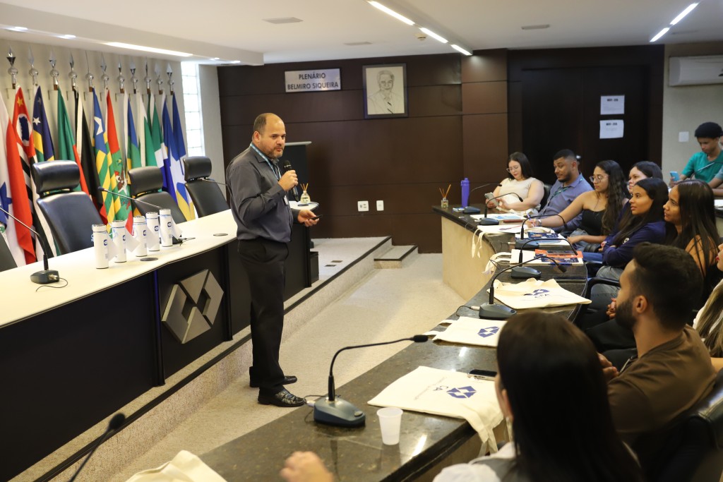 Em seguida, o chefe da Seção de Registro do CFA, Adm. Ailton Brito, tomou a palavra. Servidor da Câmara de Fiscalização e Registro da autarquia, ele aprofundou em temas como registro profissional, a importância da fiscalização para proteger a sociedade dos maus profissionais, mercado de trabalho e áreas de atuação do Administrador.